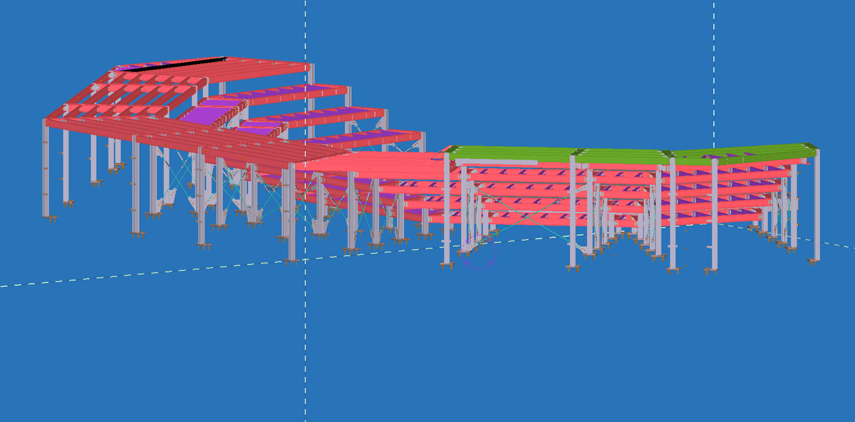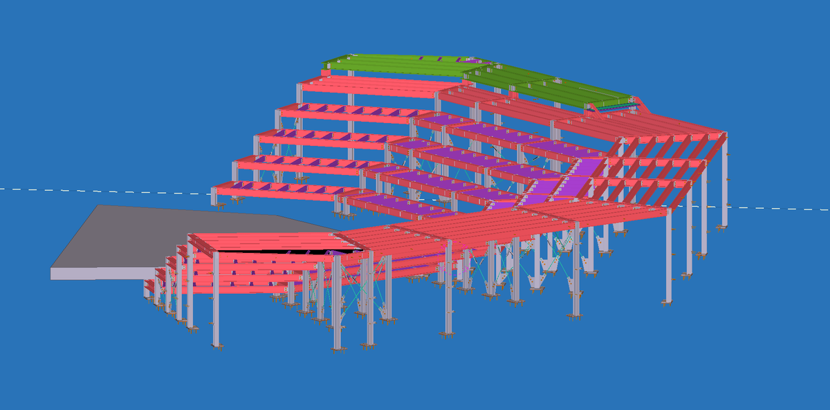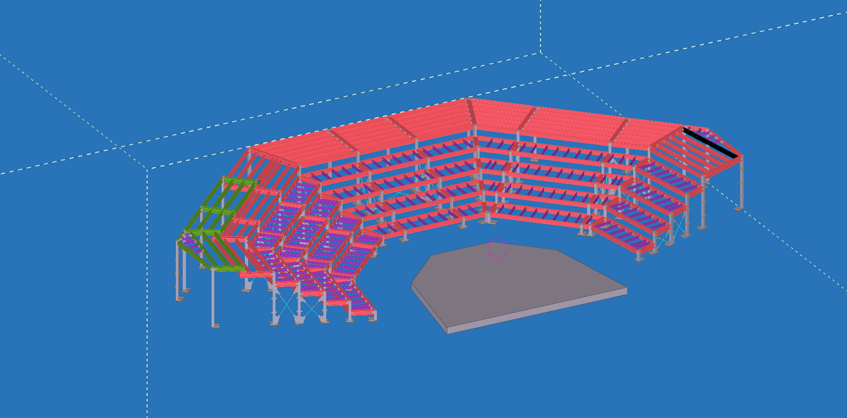 With our extensive experience with 3D BIM we were able to work within very tight on site tolerances. The tiered seating steel work had to fit in around existing concrete walls with minimal edge distances. We used in house 3D BIM to detail the workshop drawings for the structural steel. We also supplied additional stee lwork to the existing structure i.e. roof ring beam, stairs, balustrades, lintels, door frames etc.