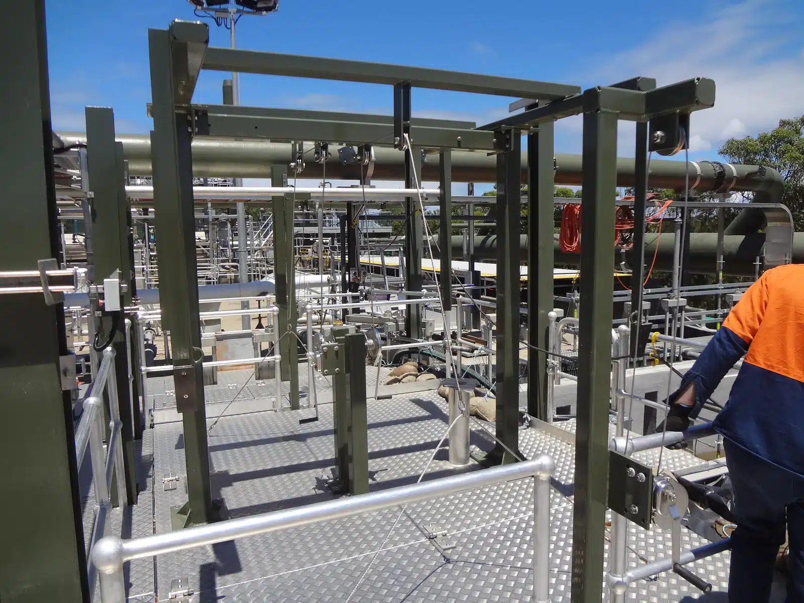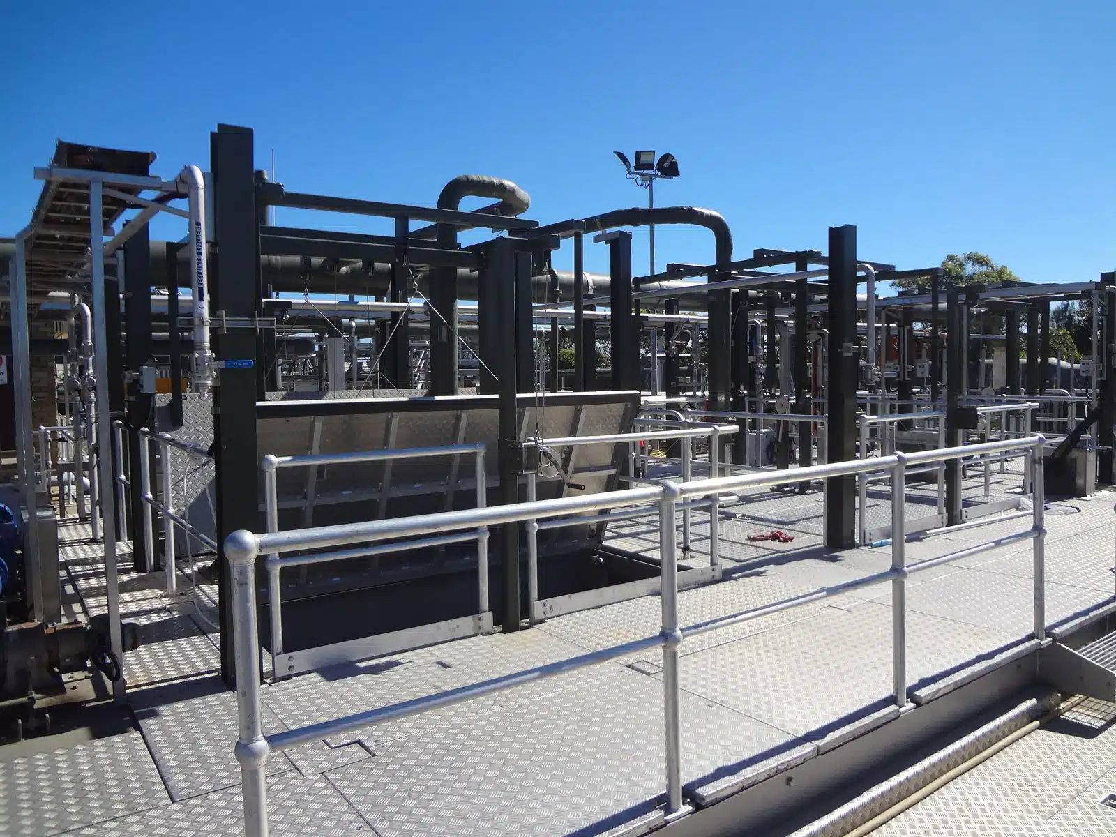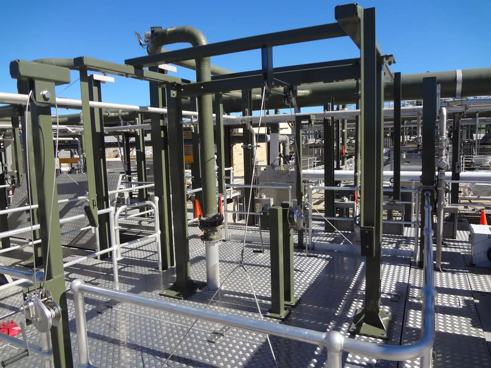 The site was classified as an extreme climate and required all steel work to be hot dip galvanized, shot blasted and given 3 coats of epoxy two pack paint totaling 300microns DFT.