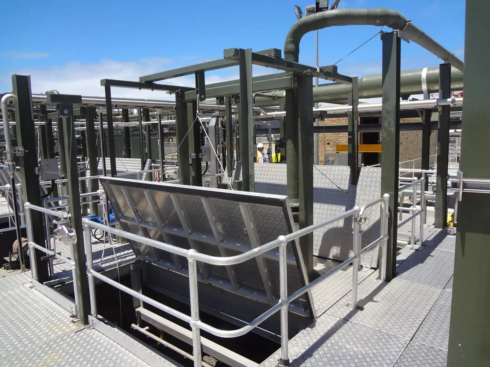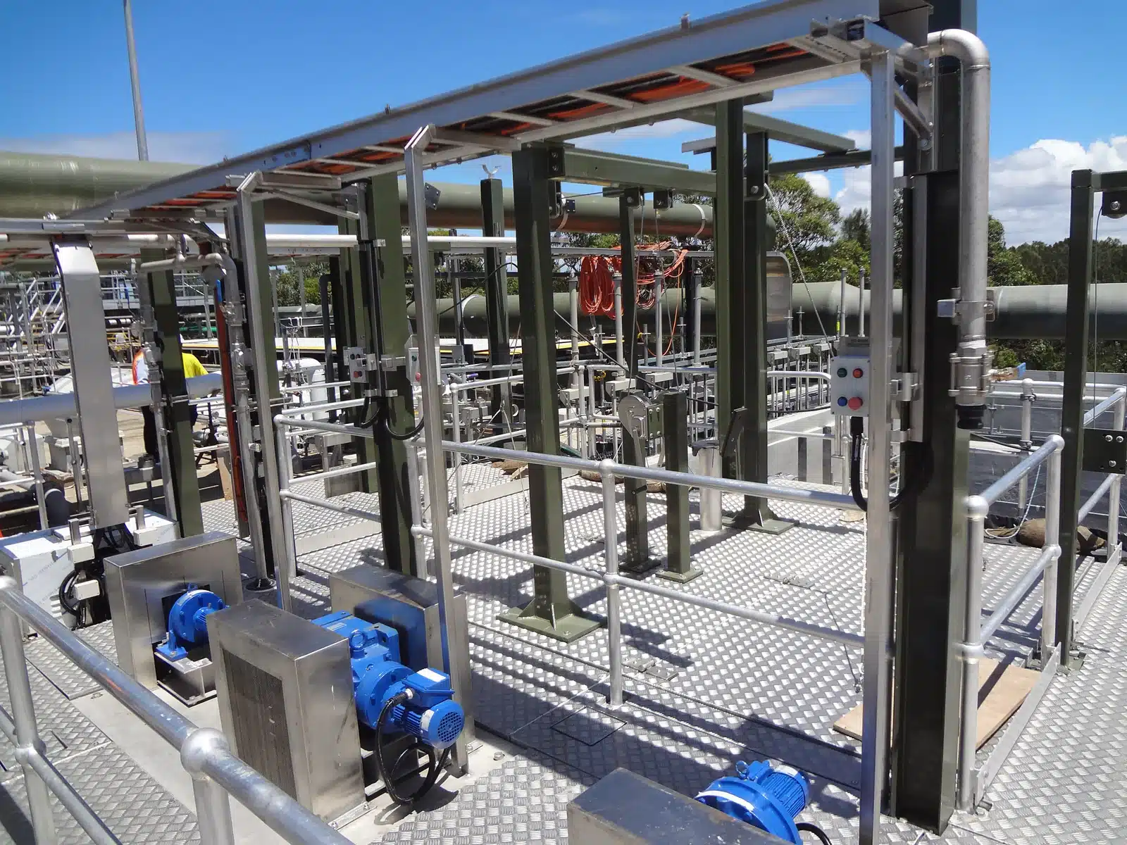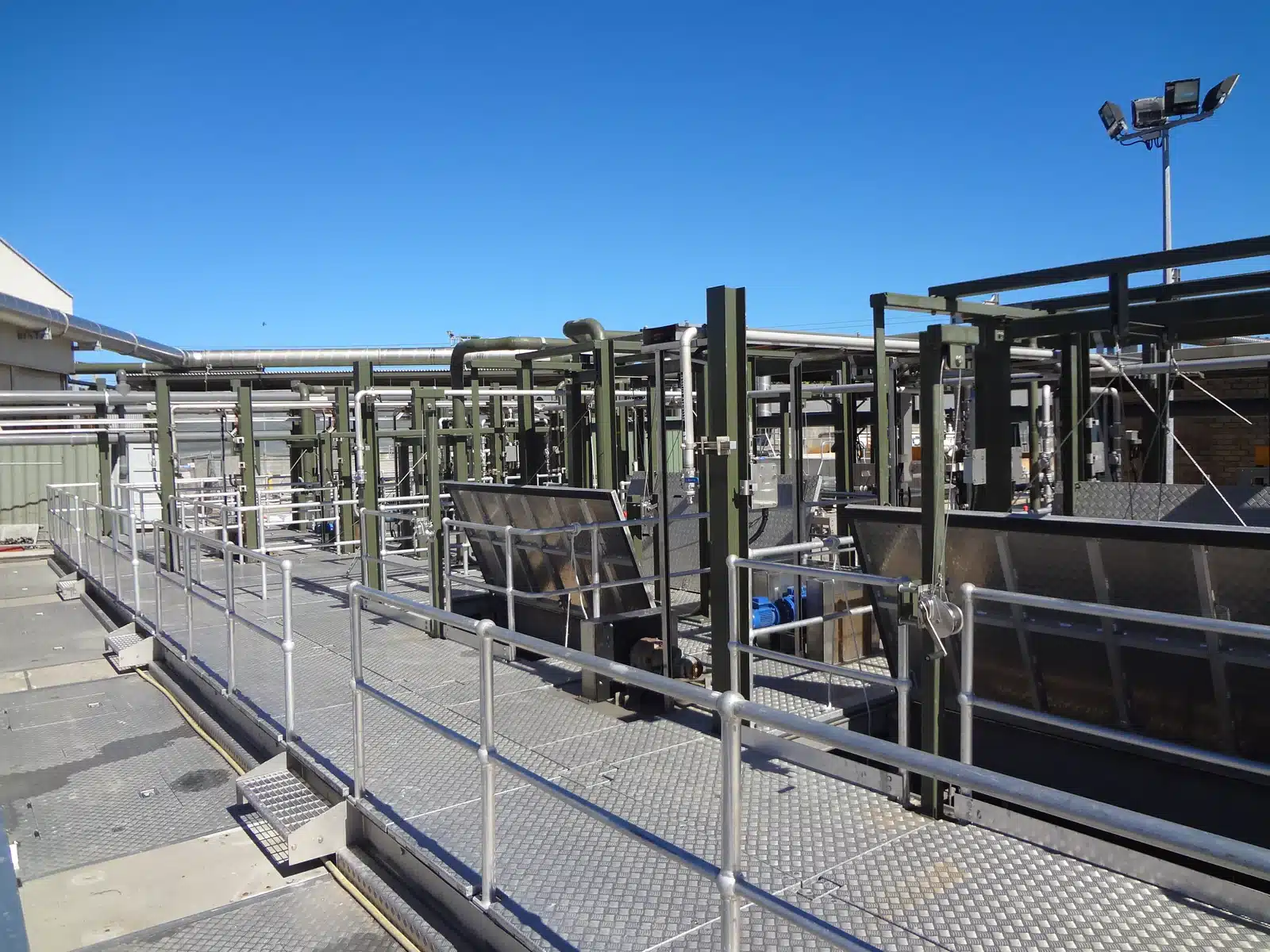 The site was classified as an extreme climate and required all steel work to be hot dip galvanized, shot blasted and given 3 coats of epoxy two pack paint totaling 300microns DFT.